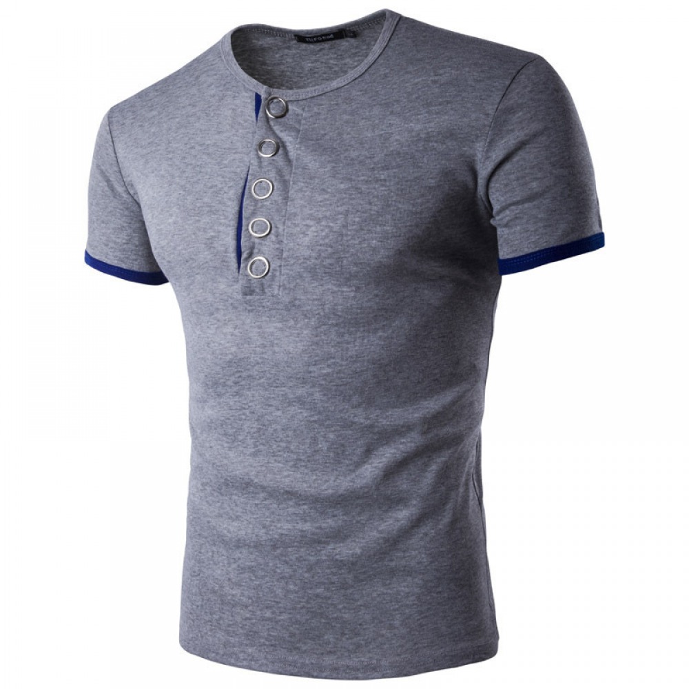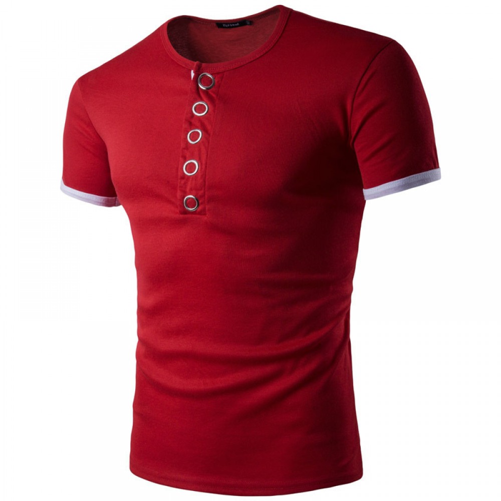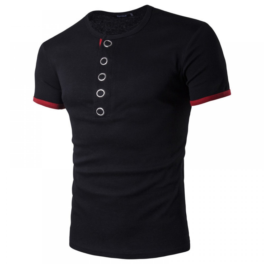 Fall and Winter New Men's Personality Big Press Button Hit Color Short-Sleeved Bottoming T-Shirt Casual Bottoming Shirt Hot Sale