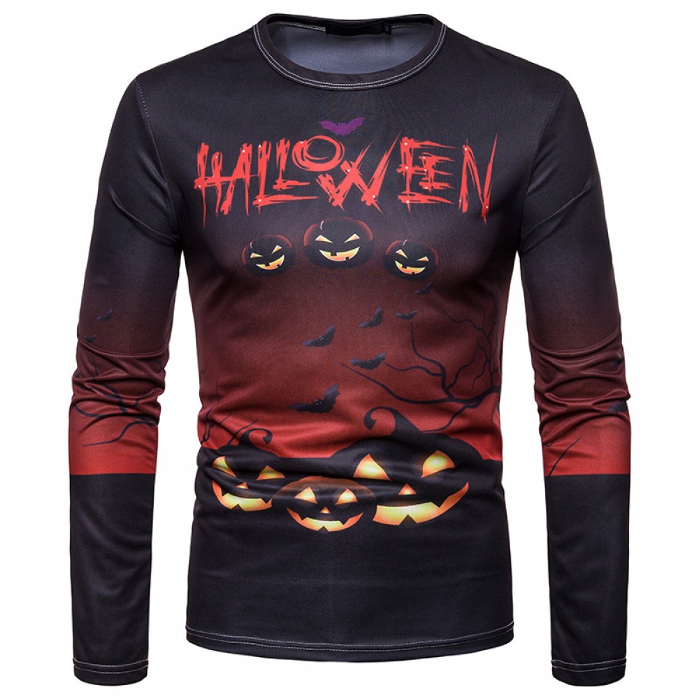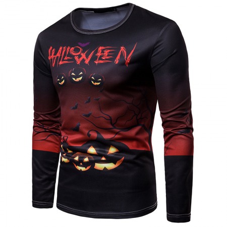 Men's 3D Digital Printing Halloween Series Long Sleeve Round Neck T-Shirt