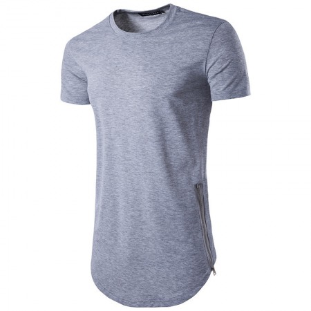 Men's High Street Style Double Zipper Long Round Neck T-Shirt Multicolor Large Size Short-Sleeved T-Shirt