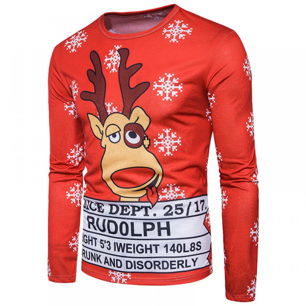 New Style Men's Special Letter 3D Printing Round Neck Long Sleeve T-Shirt