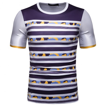 New Summer Men's Short-Sleeved T-Shirt Mens Contrast Striped Slim Casual T-Shirt